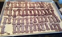dogtreatsI experimented with lots of different all-natural ingredients and finally came up with a vegetarian recipe that is healthy and pooch approved. When available, I use blueberries from our farm. I named my treats Bellview Blueberry Bones after our farm BellviewBlueberries. Every batch of Bellview Blueberry Bones is homemade in my kitchen with love. Often when I’m baking them I have an audience of furry friends sitting at my feet, waiting patiently for their treats.