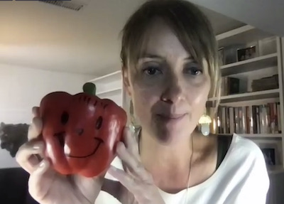 Fruits and Veggies: Draw a face on a red pepper and voila — you have “Ruby the Red Pepper” who can tell stories, ask questions, or play hide and seek. Take photos of Ruby hiding in different places in your house. Send the photos to your grandchild with a note saying: Ruby wants you to bring 5 red things to our next call.